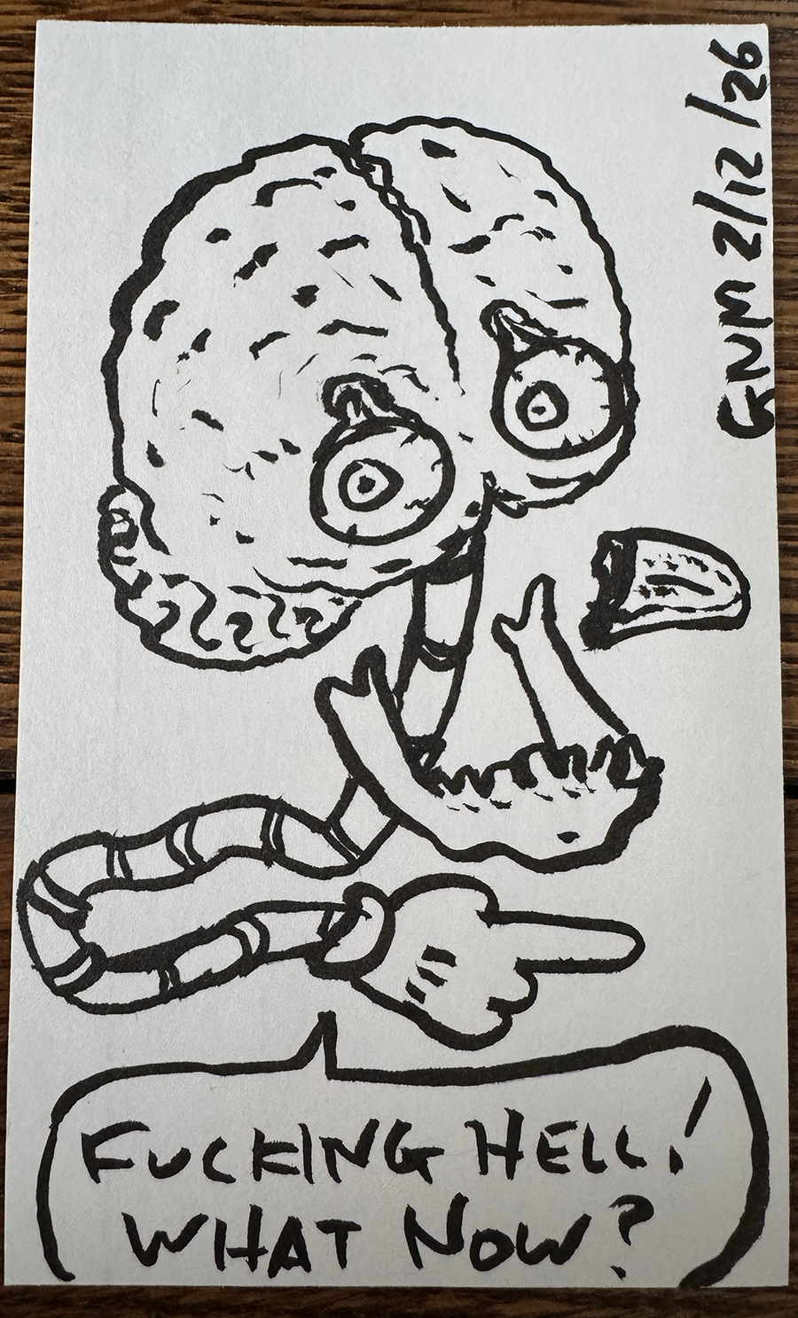 I like drawing this head without the head bucket portion that makes a head a head. I come back to it often, but it doesn’t have a name.