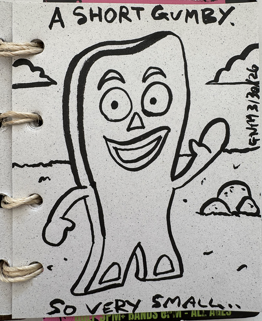 Short Gumby Apr 15 Written By Geoff Mosher I love Short Gumby. Maybe the Clokey Estate and I can work out a deal. Geoff Mosher