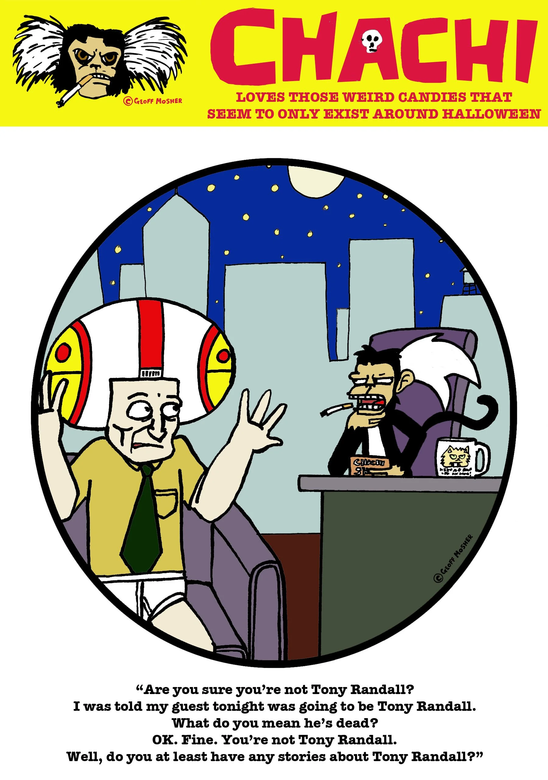 Late Night Chachi Apr 16 Written By Geoff Mosher Rilly big shoe. Don’t assume Tony Randall will show up to your talk show, especially because he’s dead. Geoff Mosher